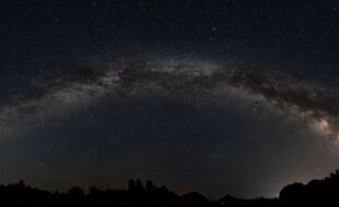 Panorama (mosaïque) de la Voie lactée à la chapelle de Vaulry en Limousin