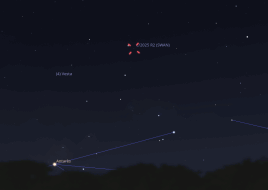 Au cours des mois d’octobre et de novembre 2025, nous devrions avoir la possibilité d’observer deux comètes découvertes récemment. Il s’agit de C/2025 A6 Lemmon et C/2025 R2 Swan, déjà signalées par Fernanda dans ses éphémérides. Pour connaître leur trajectoire au cours du temps, de nombreux amateurs souhaitent utiliser Stellarium.